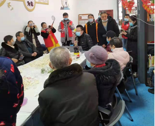 活动现场,老人们大显身手,充分地展示了自己包饺子的娴熟技术;有的老人刚开始不好意思,怕自己包的饺子不好看,在大家的鼓励下拿起了饺子皮,开启了包饺子之旅。此次活动一共有10名志愿者参加,其中一名志愿者主动为大家献唱。一位老奶奶为了感谢党和政府的关怀,自发献唱《我和我的祖国》。整个活动在一片欢乐祥和中进行着,活动最后,志愿者为空巢高龄老人送去了温暖的饺子及对联、新春大礼包等,老人们也表达了激动与感激。