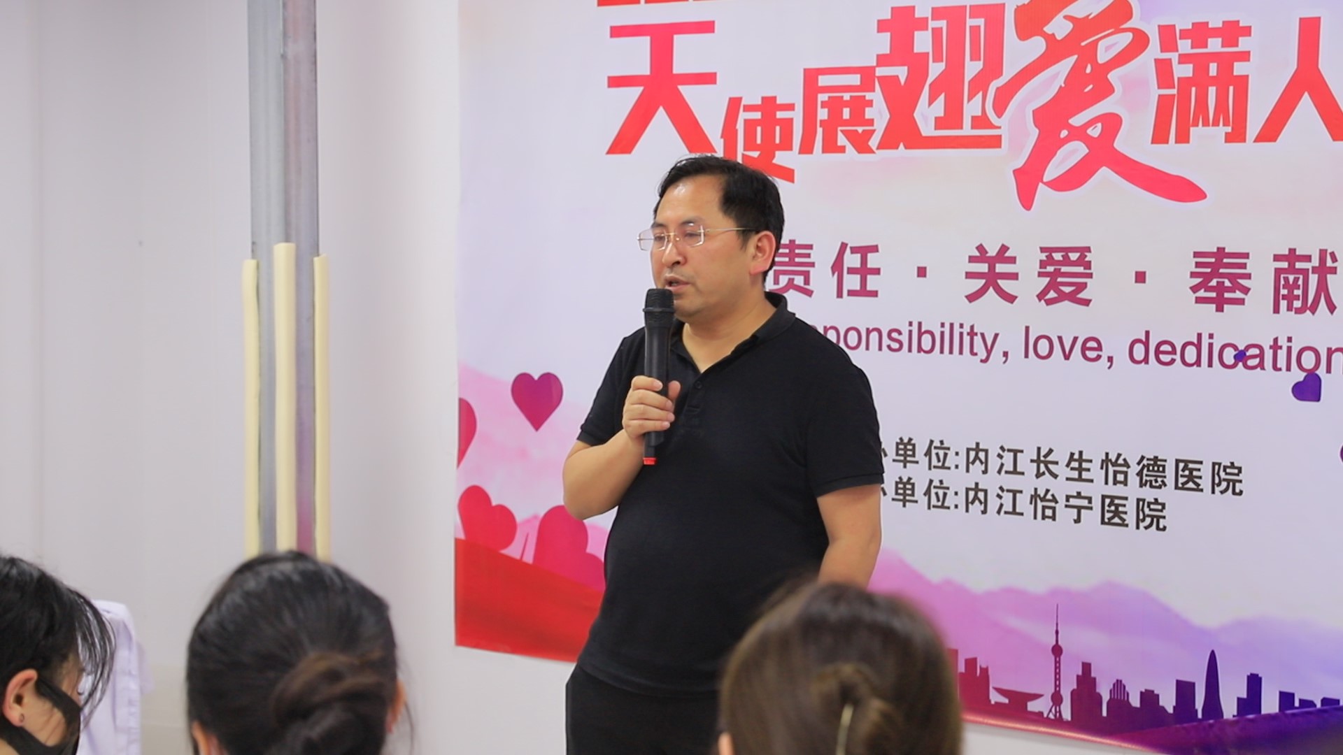 国际护士节“优秀护士”表彰大会。内江长生怡德医院院长罗伟、业务院长曹祖伟,怡宁医院院长杨勇,出席了此次表彰大会。
