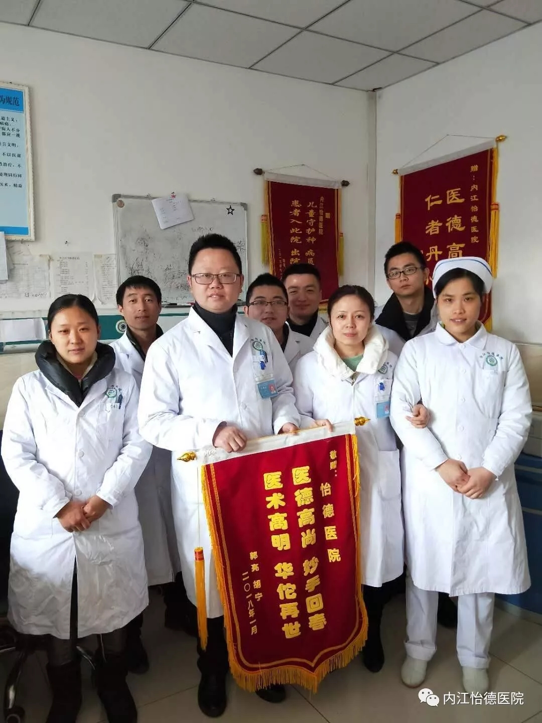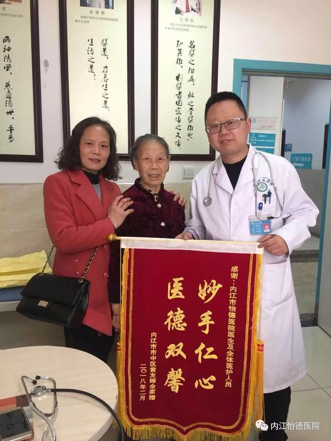 2018年才开始,我院内科已获得两位患者赠送的锦旗,体现了患者对我院医务人员的认可,更彰显出患者对我院医务工作的肯定和相信。患者表示在住院期间深深地感受到内科全体医护人员的专业的技术及精心的护理,特别是曹祖伟副院长每天悉心的问候照顾,使患者感受到了如家般的温暖。其中一位患者的家属说:“多得你们怡德医院的医生护士,我妈妈才恢复得那么好,谢谢你们!”