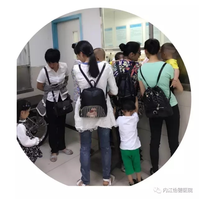 (检验科外等候的家长孩子们)