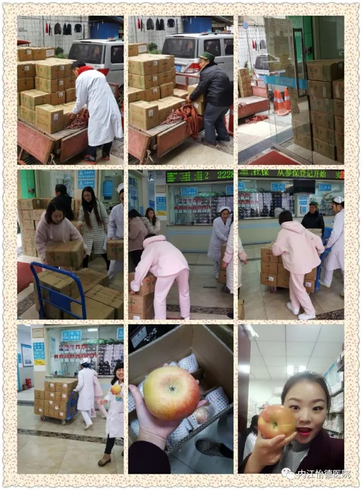 内江怡德医院罗伟院长为了感谢员工的辛勤付出,特地从陕西购买大批苹果回来,以此慰劳大家。看着大家抱着一件件苹果脸上挂满的笑容,那份喜悦不言而喻。