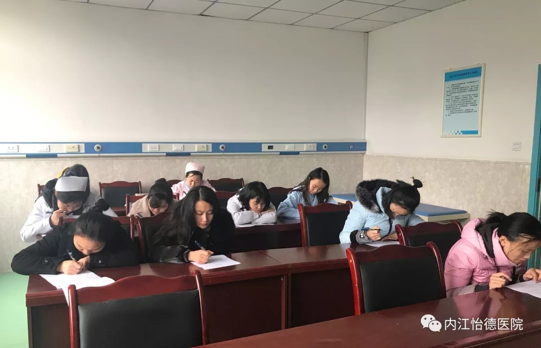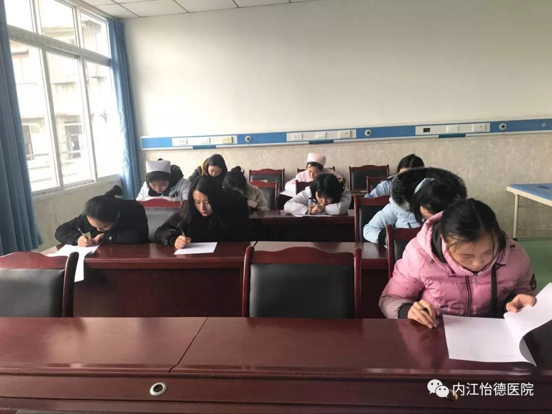 12月27日,内江怡德医院根据护理部年度工作计划对全院护理人员进行了2017年护理人员年终考核的理论知识考试,全院所有护理人员参加了此次考试,护理部成员负责监考。